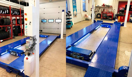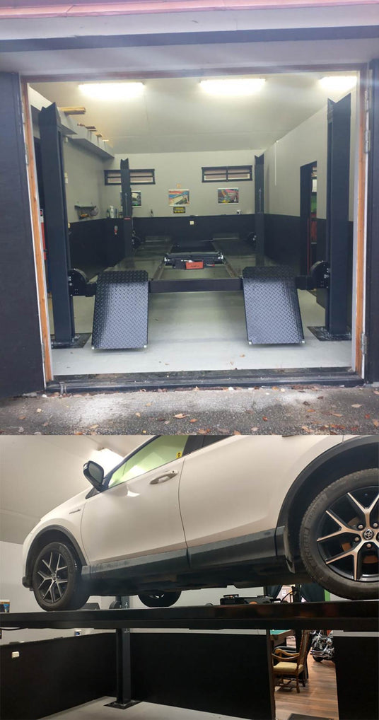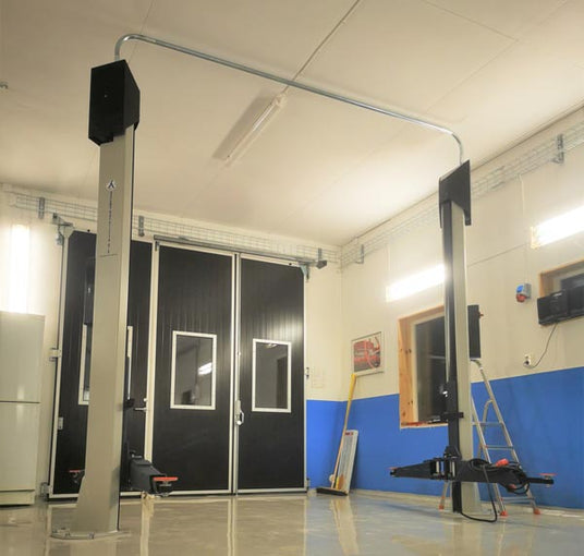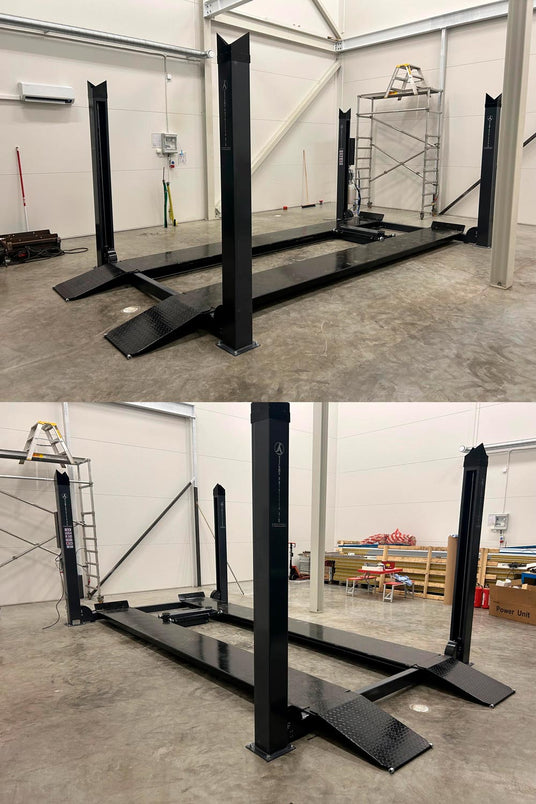 I ett helt nybyggt garage valde Karl att slå till på en fyrpelarlyft JA5500F med hela 5.5 Tons lyftkapacitet tillsammans med frihjulslyften JA2000J-AIR inklusive installation, snygg lyft i en super fin lokal.