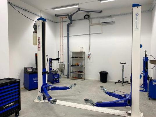 Efter god rådgivning och planering beställde vi allt till vår nya verkstad. Allt från tvåpelarlyft, däckmaskiner till spilloljetunna, press och luftvindor m.m.