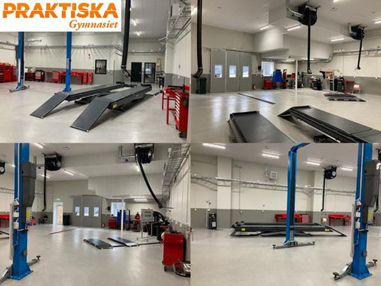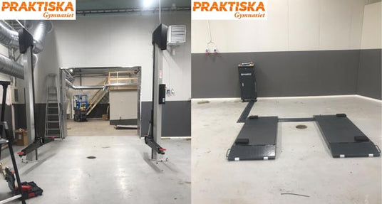 Här valde skolan i Karlstad att köpa in två praktiska lyftar, den en valet föll för vår extremt smidiga elektromekaniska tvåpelarlyft JA3500T-E tillsammans med vår populärast höglyftande saxlyft JA3500S-E utan några mekaniska spärrar, BRA KÖP!