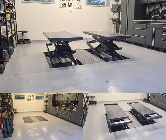 Jag letade efter en fordonslyft till mitt nya garage och kriterierna var att den skulle vara nedsänkt i golvet, inte behöva tryckluft för att lossas samt inte minst, vara tillverkad i Europa.