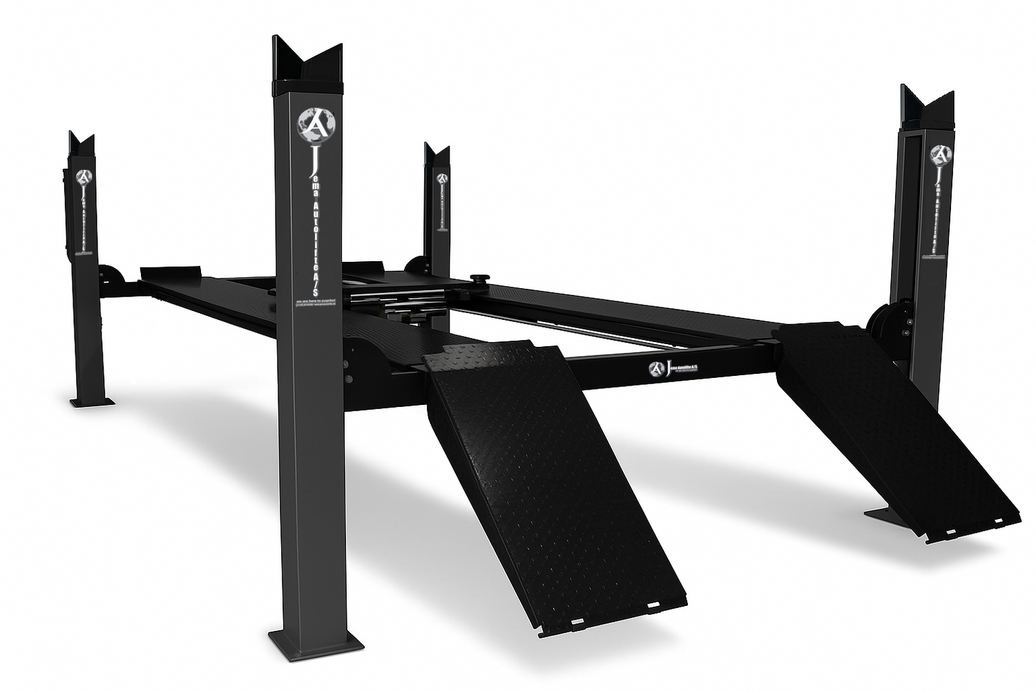 • Assisterande körbanan på Jema Autoliftes fyrpelarlyftar är justerbar in/ut efter behov.
